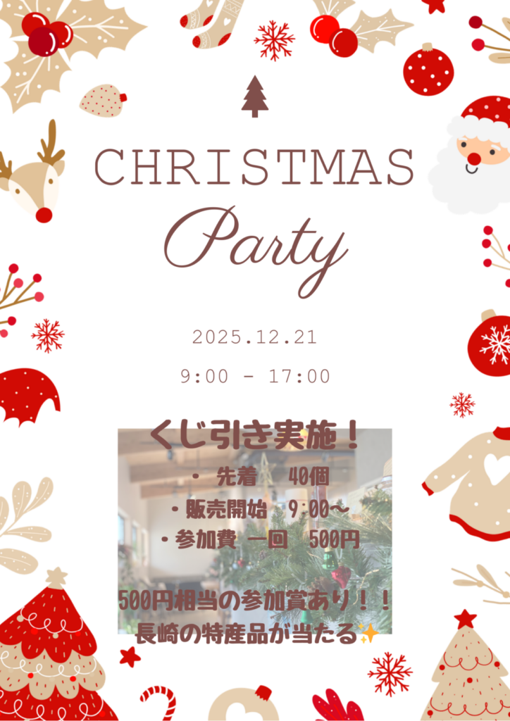12月21日、日曜日9:00〜17:00にクリスマスパーティーを開催いたします!